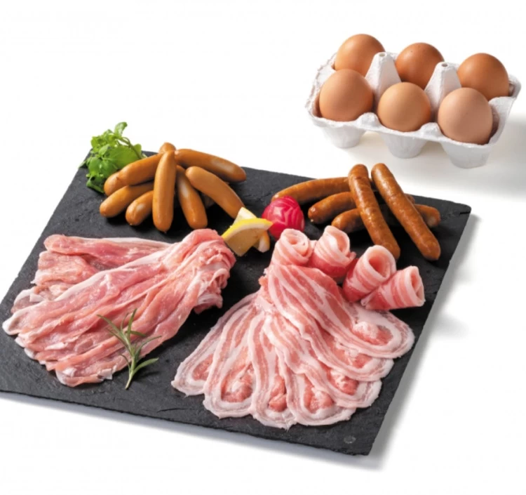 | 内容量 | ①館ヶ森高原豚 バラ肉しゃぶしゃぶ用140g ②館ヶ森高原豚 モモ肉しゃぶしゃぶ用140g ③館ヶ森高原豚 ミニウインナー95g ④館ヶ森高原豚 あらびきソーセージ5本 ⑤館ヶ森高原 昔たまご小玉(6個入) |