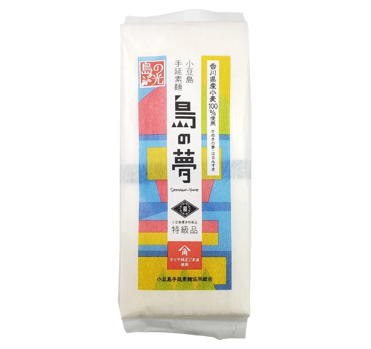 稀少な香川県産中力粉「さぬきの夢」と香川県産初の強力粉「はるみずき」を黄金比でブレンドし、昔ながらの特別な製法で丹念に炊き上げた瀬戸内の塩「瀬讃の鹽」を使用した手延べ素麺。