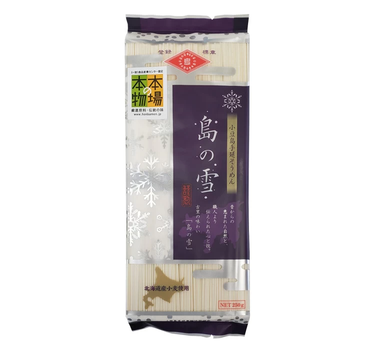 島の雪は北海道産小麦を北海道で加工した地粉使用の素麺。