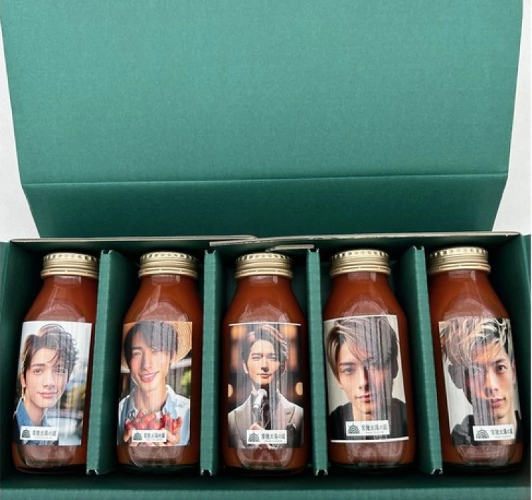 常陸太陽の庭トマトジュース(180ml)5本入り贈答用BOX、HTN5人ラベル・ショッパー付き