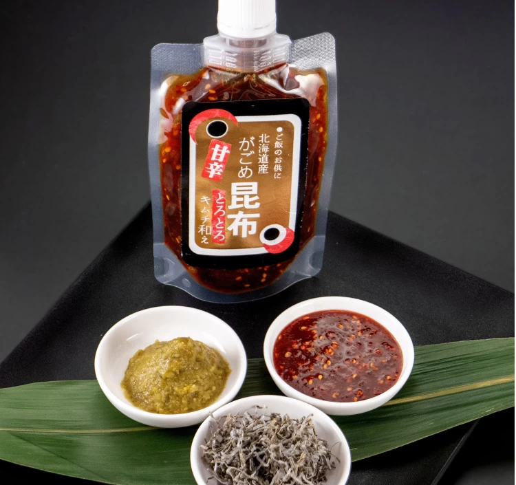 北海道産のがごめ昆布を特製キムチだれと隠し味に大分県産ゆず胡椒を合わせた今までにありそうでなかった全くアタラシイ商品です。