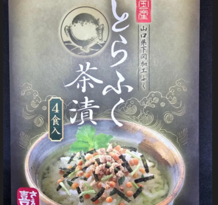 下関で加工したふぐをの旨味をギュッと閉じ込めてお茶漬けにしました。封を開けてお湯をかければ完成です。お好みで薬味なども添えて頂いたら更に美味しくお召し上がれます。