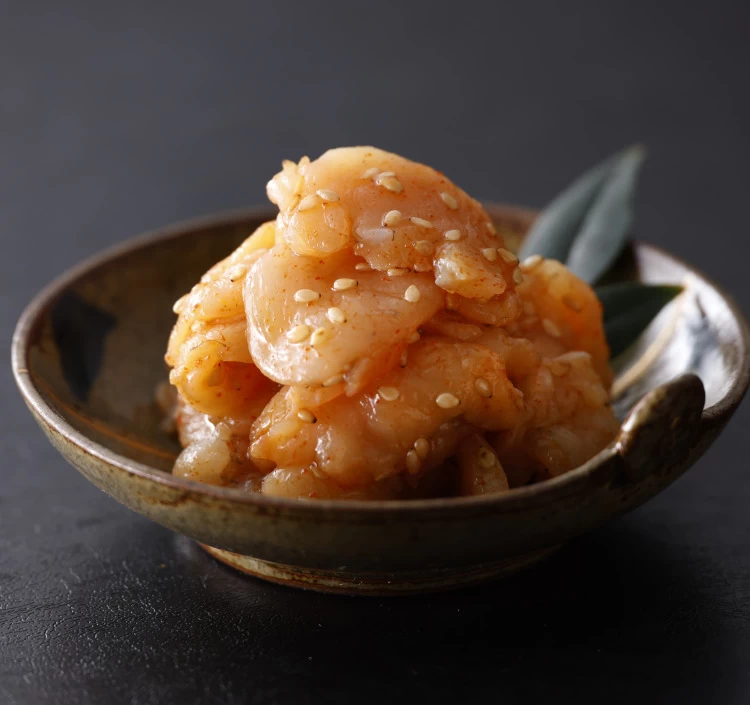 ふぐの女王様、国産マフグを食べ応えのある大きさにカットし優しい味付けで調味した塩辛風の珍味です。