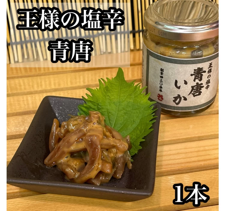甘みと食感が際立つアオリイカを厚めにカットし、青唐辛子の風味を効かせた“王様の塩辛 青唐”。