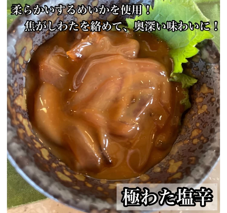 「極わた塩辛 焼きわた仕立て」は、するめいかの濃厚な旨みを楽しめる贅沢な海鮮珍味です。