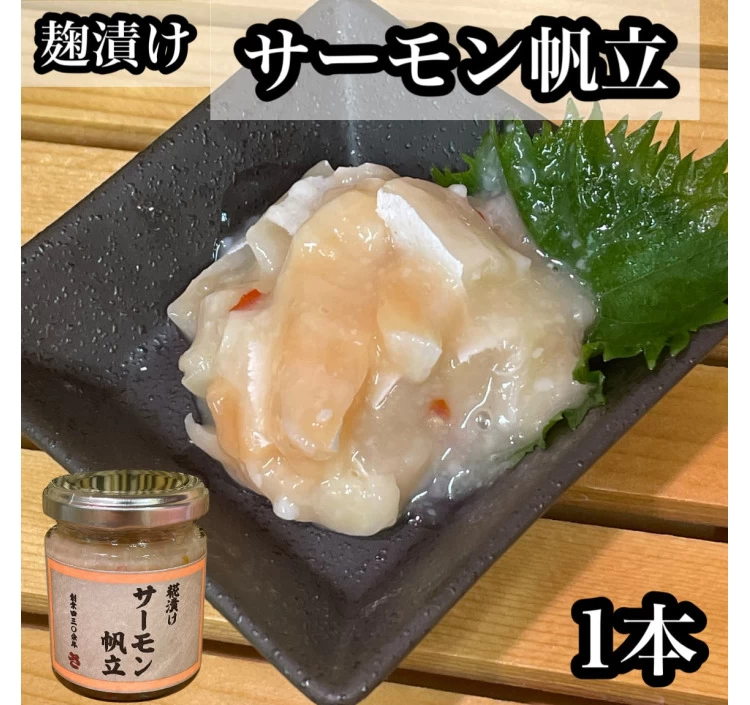 新鮮なサーモンと帆立を贅沢に使用し、特製の麹にじっくり漬け込んだ「サーモン帆立 麹漬け」。