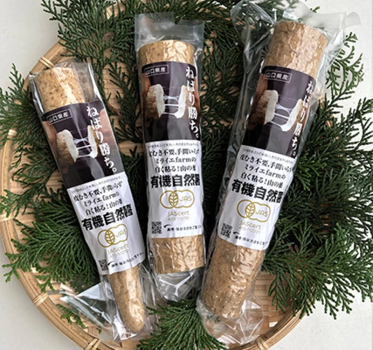 山口県・徳地にある「ミライエfarm」から自然豊かな環境で育った「自然薯」を真空パックでお届け。徳地の澄んだ水が湧く環境で、農薬を使わずに育てる高品質の「自然薯」栽培をしている。真っ白く粘りの強さが自慢で、皮ごとすり下ろしてもアクが少ないのが特徴。健康長寿や若返りの期待ができる滋養強壮成分がたっぷりと含まれ、すり下ろしてとろろ汁にするも良し、天ぷらにするも良しの万能品で、毎日の食卓の一品におすすめ。