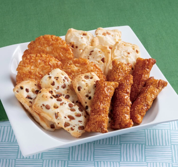 | 内容量 | 田舎おかき醤油味11本/黄金揚げ6枚/マカダミアナッツおかき7枚/越乃豆もち7枚 |