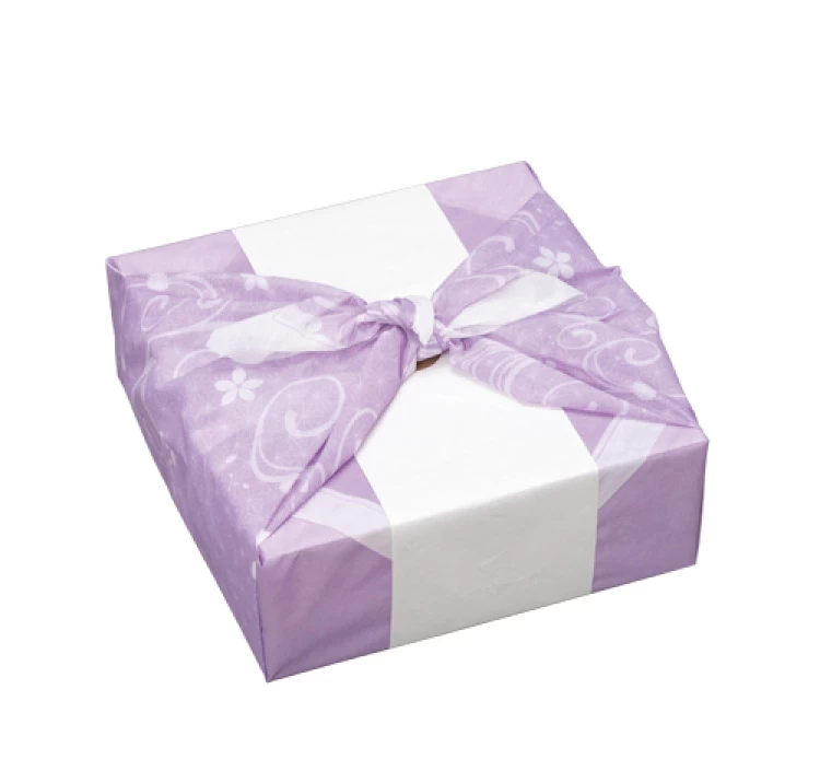 上品な紫の不織布で包んでお送りされるため、法要やお彼岸等のシーンで使えるギフトセット。