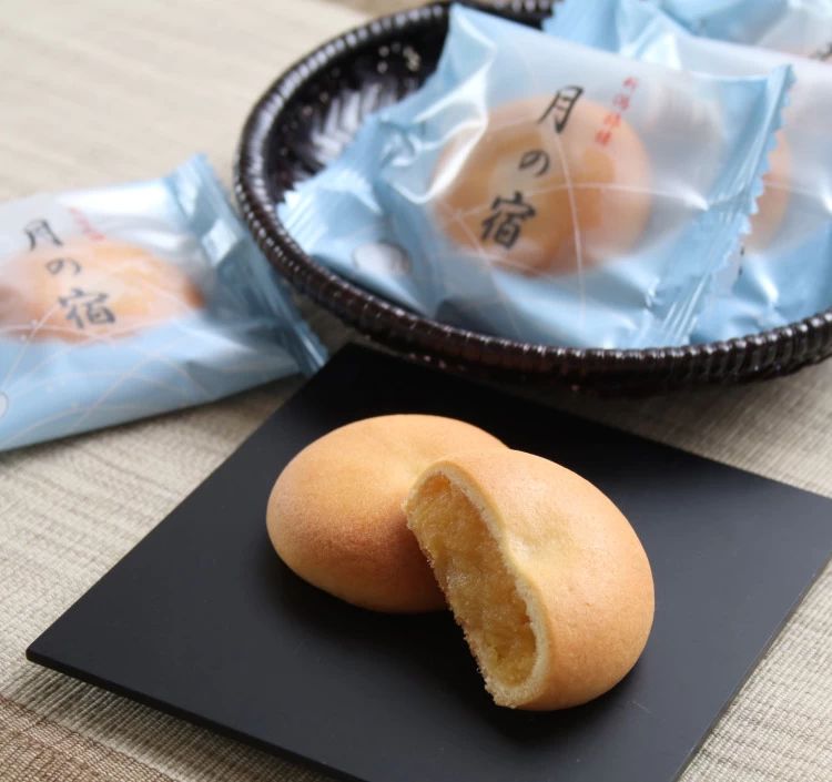 甘薯「紅はるか」にバターや卵黄を合せ、優しく自然な甘味に仕上げたお饅頭です。「旅」をテーマに令和4年発売し、「紅はるか餡」を月の光に見立てています。夏は冷やして、秋冬はトースターで焼くと更に美味しくいただけます!日持ちも長く、常温保管可能な商品で、贈り物にもおすすめです。