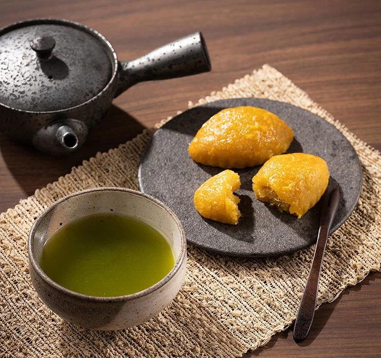 甘味とお互いを引き立てるお茶は一番人気の「きみくらの庵」と「トンネル熟成茶 秘壷蔵」を詰め合わせ。秋を愉しむ贈り物にぜひ。