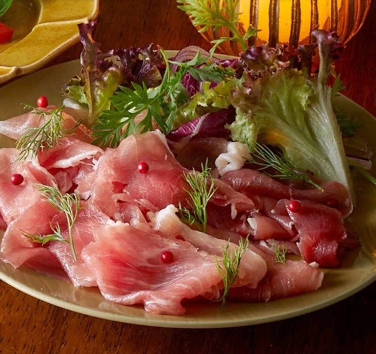 まろやかなほどよい塩気がアクセント。野菜やフルーツとの相性も抜群の霧島黒豚の生ハム切り落とし。宮崎県の豊かな自然の中で育てられた黒豚の風味を贅沢に閉じ込めた生ハムです。黒豚ならではの柔らかな肉質と深みを味わえる一品です。