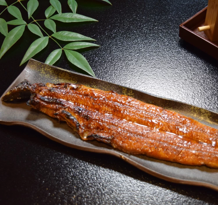 身は厚く甘みと良質な脂の旨味が広がる静岡県浜名湖産のうなぎを使用し、60余年の経験を持つ熟練の職人が、宮崎県産の良質な「日向備長炭」で皮はパリッと身はふっくらに香ばしく焼き上げる。