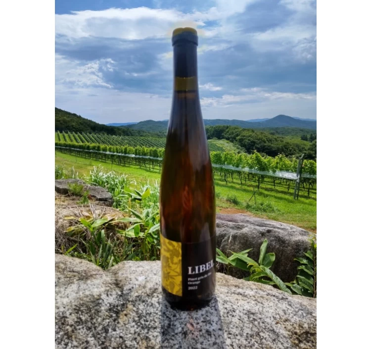 灰色がかったピンクのピノグリを使った、挑戦的なオレンジワインです。