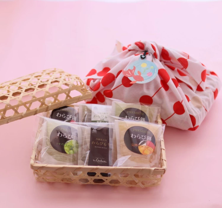 | 内容量 | 丹波黒豆わらび餅×1 丹波大納言抹茶わらび餅×1 フルーツわらび餅完熟マンゴー×2 フルーツわらび餅シャインマスカット×2 1個:約120g |