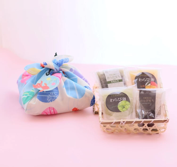 竹籠と風呂敷で包んだ美しい佇まいが、贈り物にもおすすめです。