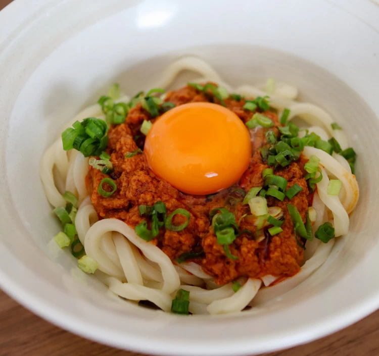 製麺所直送もっちり生うどんと旨辛汁なし坦々ソースが相性抜群