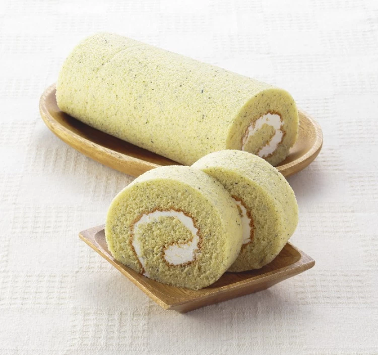 ふんわり、しっとり。香ばしいきなこの生地に、やさしい甘みの丹波産黒豆を散りばめたロールケーキです。