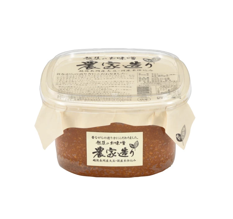 かつて、越後・長岡の農村では、雪解けとともに家族総出で味噌づくりをしており、そんな昔ながらの味と手間ひまを大切に受け継ぎ、「農家造り」と名付けられたこちらの味噌は、伝統的な製法にこだわった逸品です。