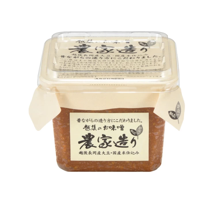 かつて、越後・長岡の農村では、雪解けとともに家族総出で味噌づくりをしており、そんな昔ながらの味と手間ひまを大切に受け継ぎ、「農家造り」と名付けられたこちらの味噌は、伝統的な製法にこだわった逸品です。