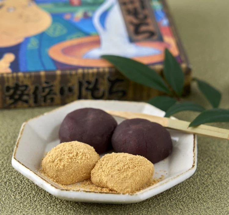 徳川家康ゆかりの伝統的和菓子である、静岡銘菓「安倍川もち」。清流「安倍川」の伏流水を使用した、製造開始以来の製法を守り続けている。添加物の使用を極力控えながらも、お餅の柔らかさにこだわった逸品。「きな粉もち」と「あんこもち」の2種類を食べ比べできる。歴史を感じる伝統的なパッケージで、静岡のおみやげとして長く愛されている。