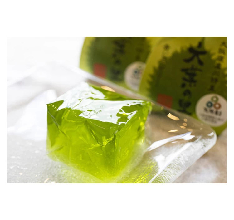 大阪産(おおさかもん)にも認定されており、門外不出の種子を使い栽培されている寝屋川特産の大葉(青じそ)を使った、あっさりさっぱりとした味わいのゼリーとなっている。