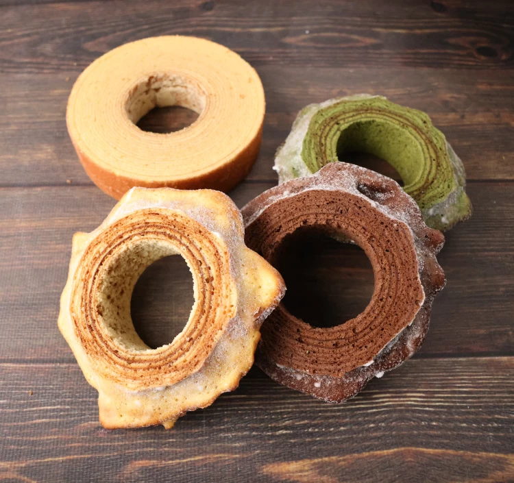 素材と製法のどちらにも一切の妥協を許さない“手づくりのぬくもり”が詰まった逸品です。厳選した小麦粉、フランス産発酵バター、岡山県産の新鮮な卵を使用し、熟練の職人が一層一層丁寧に焼き上げています。