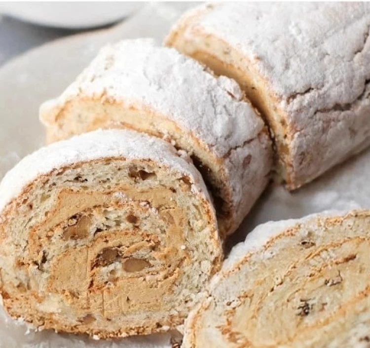 「スイートモカロール」は、くるみを練り込んだ軽やかな卵白生地に、モカ風味のバタークリームをたっぷりと巻き込んだロールケーキです。ひと口食べれば、ほのかに薫るコーヒーの香りと濃厚でなめらかなバタークリームが口いっぱいに広がり、くるみのサクサクとした食感がアクセントに。