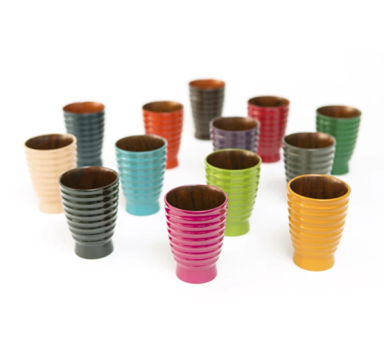 1917年創業、香川漆器の老舗工房が手がけた筋入カップシリーズ。手で持ったときに、しっくりと、なじむ形状にこだわっており、独特の筋入り模様がポイントのこのカップは、手に吸いつくような持ち心地。漆器ならではのやわらかな口当たりに加え、木製ならではの軽さがあり、暖かい飲み物も冷たい飲み物もじんわりと温度が伝わってくる。どんな季節でも、日常のどんなシーンでも使いやすいカップ。