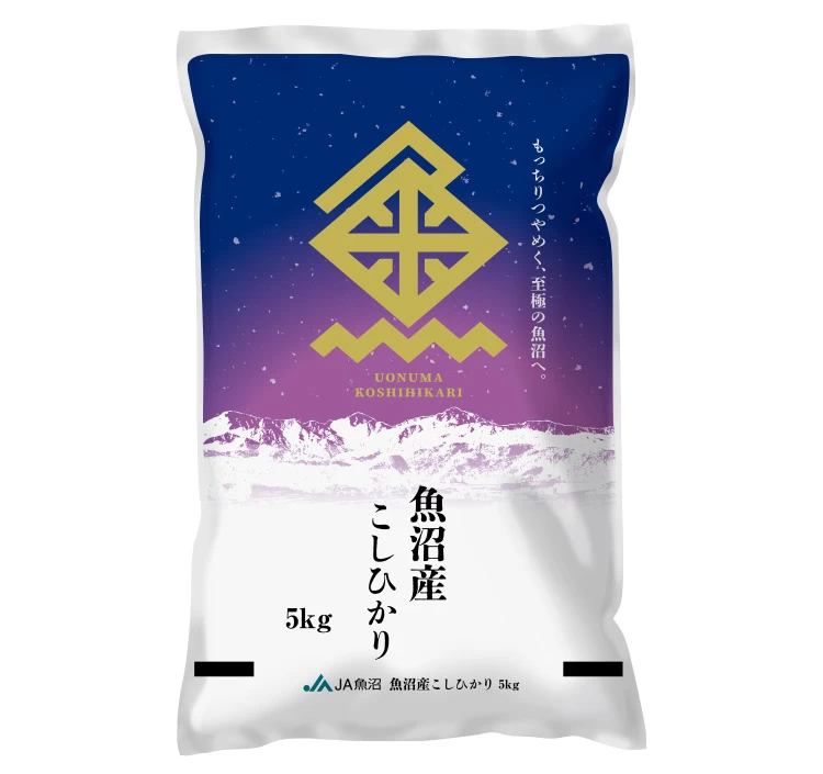 もっちりとした弾力と上品な甘みが美味しい「魚沼産こしひかり」の精米。新潟県魚沼地域は雄大な山々に囲まれた盆地で、昼夜の寒暖差が激しく、豊かな雪解け水とミネラルを多く含む土壌が、お米に深い旨味をもたらしている。豪雪地帯ならではの清らかな水が稲を引き締め上質な味わいを生み出しているのも特徴のひとつ。自然の恵みに加え、生産者の技術と努力によって育まれた、甘みと粘りのある豊かな味わいを存分に堪能してみよう。