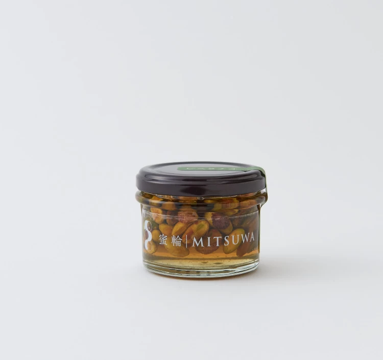 蜜輪のはちみつ漬けピスタチオ は、コクのあるピスタチオを、やさしい甘さのはちみつに丁寧に漬け込んだ上質感のある一品です。ピスタチオ特有の濃厚な旨みと香ばしさを、はちみつがほどよく引き立て、甘すぎないバランスの良い味わいに仕上がった1品。