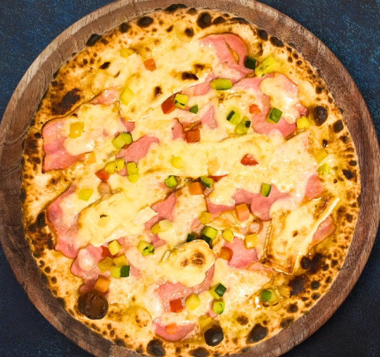 高級ベーコンとカマンベールチーズのピザ。上質なベーコンの豊かな風味が、クリーミーでエレガントなカマンベールチーズと絶妙に調和し、口の中で広がる至福の味わいをお楽しみいただけます。シンプルながらも素材の質が際立つこのピザは、特別な食事の演出に最適で、贈り物としても喜ばれる逸品です。