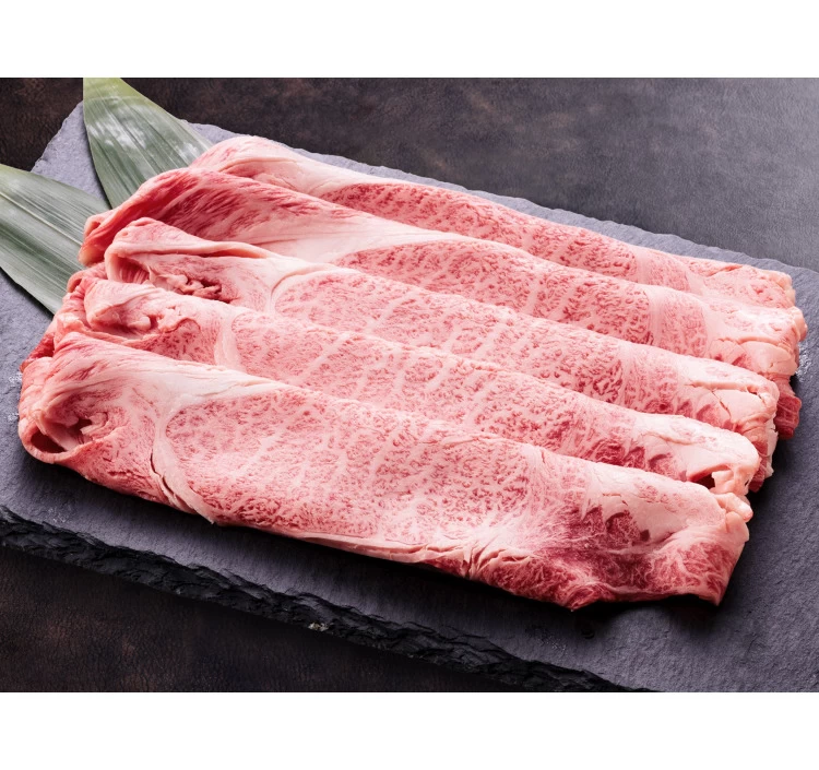 豊かなコクと上品な甘みが特徴の肩ロースを、使い勝手の良い薄切りに仕上げた一品。さっと火を通すだけで柔らかさが際立ち、口の中でふわりとほどけるような食感が楽しめます。すき焼きやしゃぶしゃぶにすると、肉の旨味が煮汁やだしと溶け合い、料理全体が一段と深い味わいに。和牛の良さを、家庭で手軽に、最大限引き出せます。