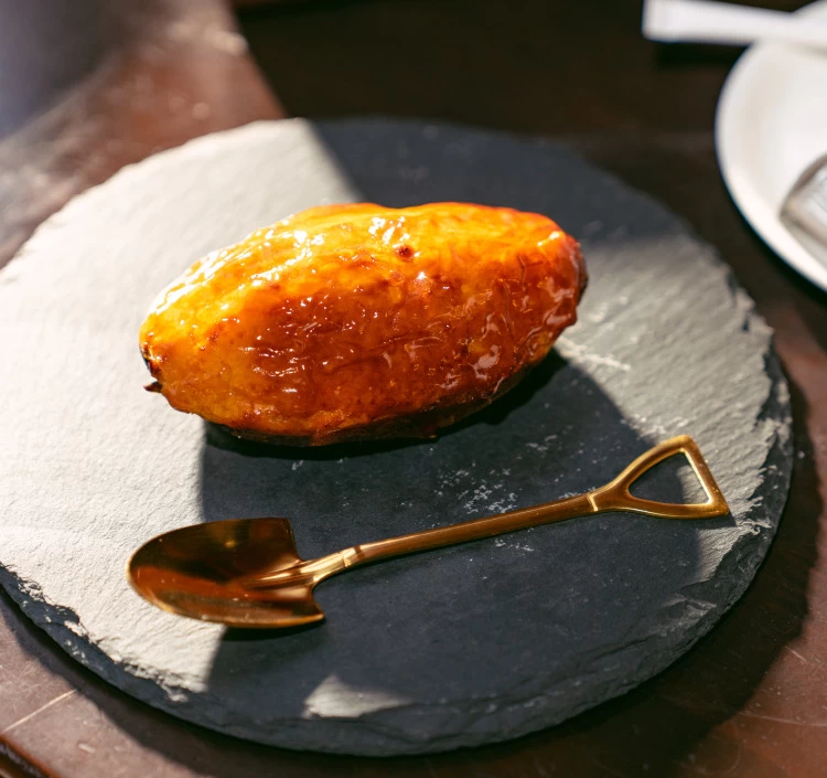 中をくり抜きバターやミルクと混ぜ合わせて作っています。