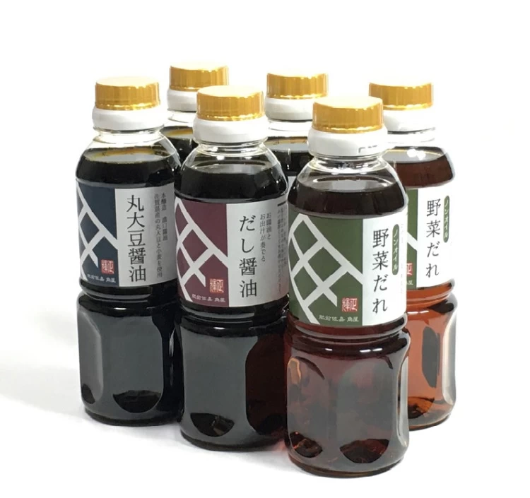 | 内容量 | 丸大豆醬油300ml、だし醤油300ml、野菜だれ300mlの自由な組み合わせ6本 |