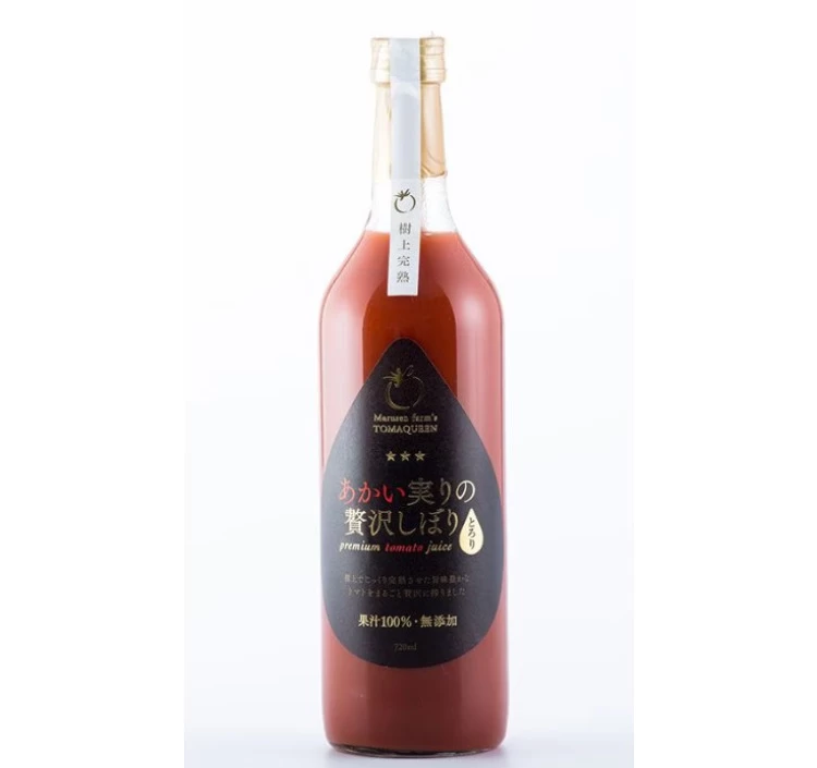他では類を見ない、自家製堆肥(有機質とミネラルや微生物、米ぬかを入れ発酵させる)の健康な土壌で時間をかけて育てたトマクイーン。糖度8~9度の中玉を収穫後すぐに搾った果汁100%、食品添加物不使用のジュースです。