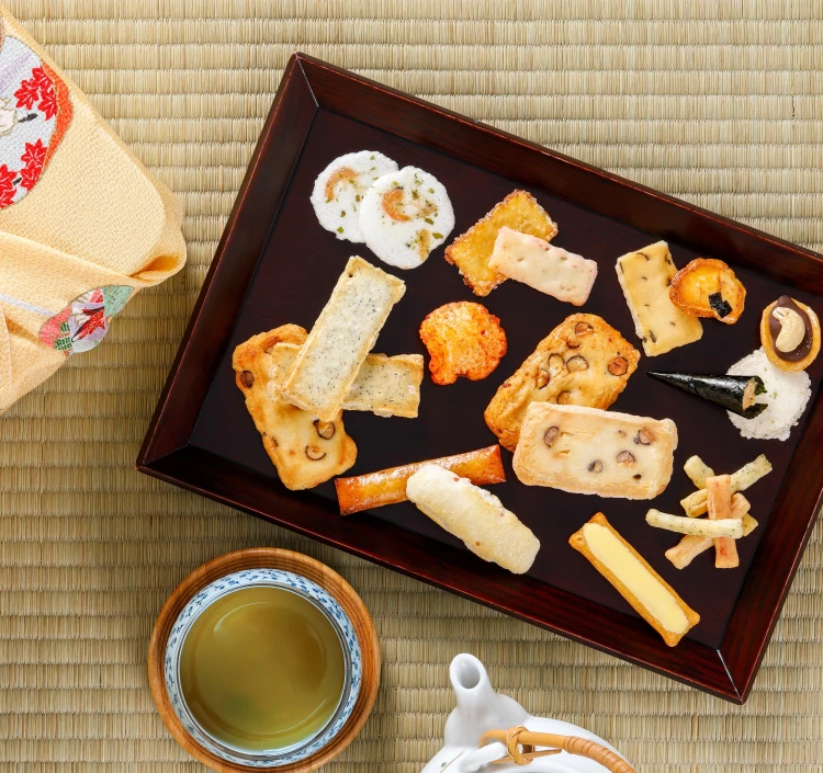 老舗の職人が国産素材で丁寧に焼き上げた、香ばしさ抜群の詰め合わせ。多彩な「珍味あられ」がギュッと詰まっています。