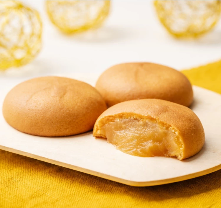 生クリームを加えたなめらかな黄味餡を、バターとミルクをたっぷり使ったソフトな生地で包み、しっとりと焼き上げました。やさしい甘さとコクのある味わいが広がる、まろやかな乳菓です。