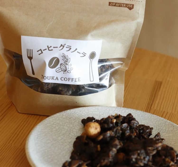 ・当店のコーヒー豆を使用したオリジナルのコーヒーグラノーラ そのまま食べて朝食やおやつのかわりに… ホットミルクと一緒に食べるとコーヒーがミルクに溶け出して2度楽