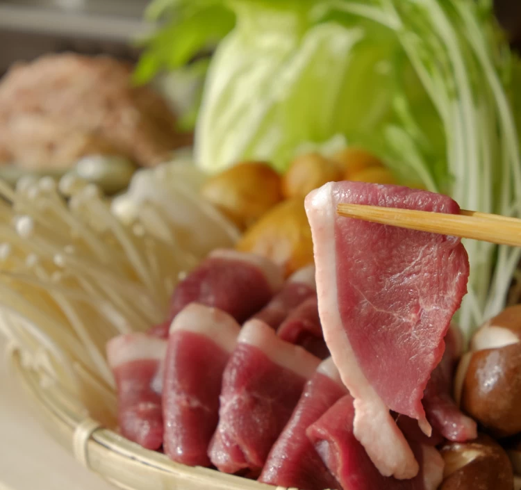 兵庫県但馬地方で育てたワイン色に輝く国産但馬鴨肉スライス(合鴨もも)は、甘みある脂と赤身の旨みが噛みしめるほどに広がり、鴨ガラをベースに鰹節・昆布・煮干しで丁寧に引いた透明感ある濃厚な鴨ガラスープと相性抜群です。国産鶏肉を合わせ、生姜や山芋、山椒などで風味豊かに仕上げたふっくら柔らかな但馬鴨つくね、そして鴨だしをまとって旨みが際立つ出石そばまで付いた本格鴨鍋セットで、家族の団欒やギフトにもぴったりな逸品です。