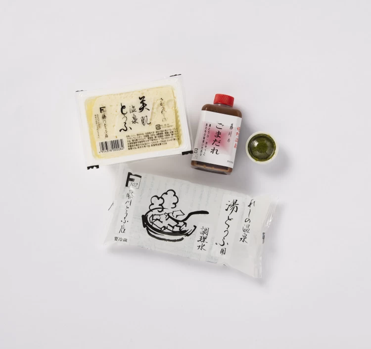佐賀県産大豆「フクユタカ」を使った、嬉野温泉名物の湯どうふを気軽に味わえるお試しセット。
