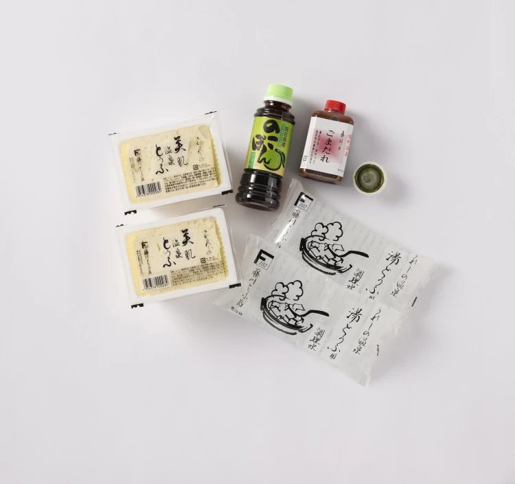 佐賀県産大豆「フクユタカ」を使った、嬉野温泉名物の湯どうふを味わえるセット。
