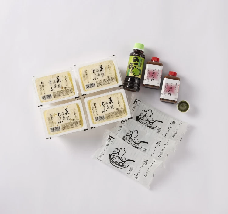 佐賀県産大豆「フクユタカ」を使った、嬉野温泉名物の湯どうふを味わえるセット。