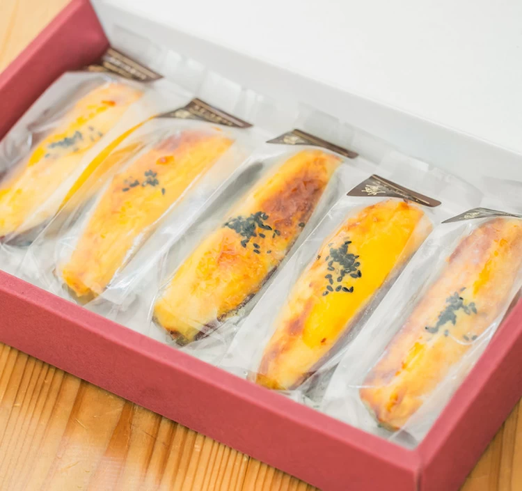 さつまいもの皮の上に特製のスイートポテトをのせ、ひとつひとつ丁寧に焼き上げた一品。