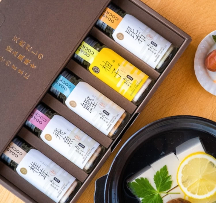 鰹節や昆布、飛魚、椎茸に加え、爽やかなゆずの香りを楽しめる5種を揃えた無添加の「おだしカクテル」セット。水冷臼式製法により、芳醇な香りとやさしい味わいを実現している。使い方はとても簡単で、料理に数回振りかけるだけ。味噌汁やうどん、おでんなど、いつもの一品が手軽に本格的な味わいへと変わる。だしを引く時間がない忙しい日常にも寄り添いながら、食卓をさりげなく格上げしてくれる。素材や製法にこだわる一品は、贈り物としても喜ばれるだろう。