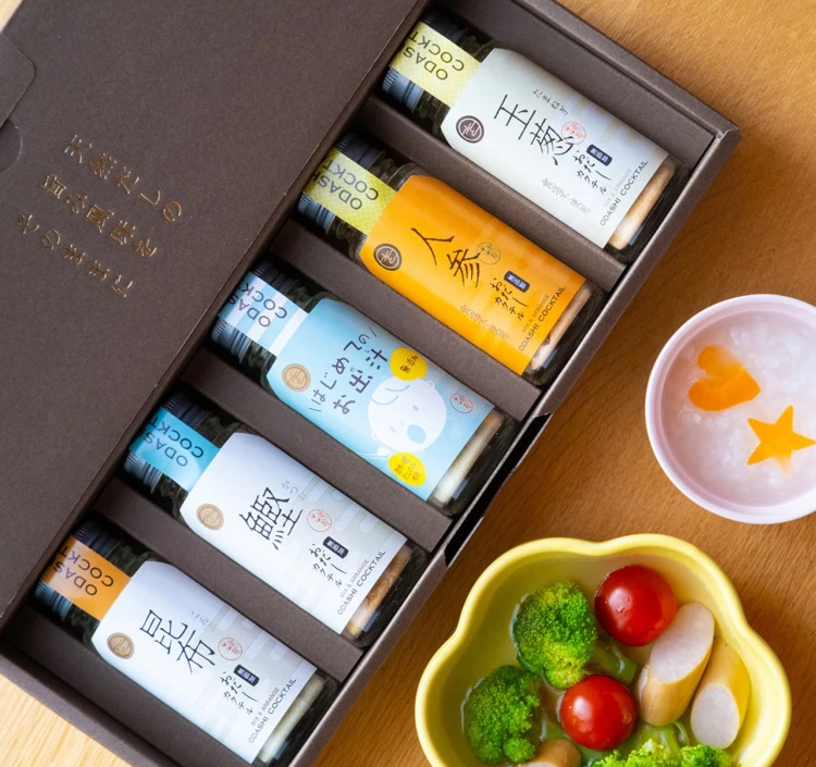 鰹節や昆布に加え、「はじめてのおだし」や人参、玉ねぎなど、やさしい味わいを揃えた無添加の「おだしカクテル」5本セット。水冷臼式製法により、芳醇な香りとやさしい味わいを実現している。使い方はとても簡単で、料理に数回振りかけるだけ。味噌汁やうどん、おでんなど、いつもの一品が手軽に本格的な味わいへと変わる。だしを引く時間がない忙しい日常にも寄り添いながら、食卓をさりげなく格上げしてくれる。素材や製法にこだわる一品は、贈り物としても喜ばれるだろう。