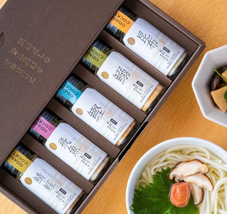 鰹節や昆布に加え、飛魚やムロ鯵、鰯といった個性豊かな魚の旨みを揃えた無添加の「おだしカクテル」5本セット。水冷臼式製法により、芳醇な香りとやさしい味わいを実現している。使い方はとても簡単で、料理に数回振りかけるだけ。味噌汁やうどん、おでんなど、いつもの一品が手軽に本格的な味わいへと変わる。だしを引く時間がない忙しい日常にも寄り添いながら、食卓をさりげなく格上げしてくれる。素材や製法にこだわる一品は、贈り物としても喜ばれるだろう。