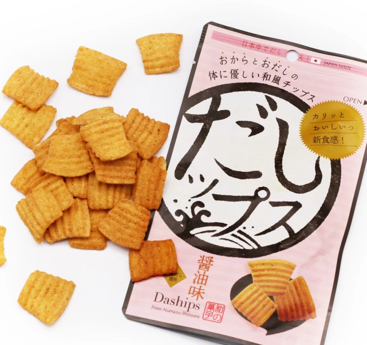だしの旨みと香ばしい醤油のコクが絶妙に調和した無添加スナック「だしップス」。素材本来の風味を大切にし、軽やかな食感とともに自然な美味しさを楽しめる一品に仕上げている。おやつや小腹が空いたときにも手軽に取り入れられ、子どもから大人まで幅広く楽しめるのも魅力。シンプルながら奥行きのある味わいが、日常のひとときを少し豊かにしてくれる。安心して味わえる、新しいだしの楽しみ方だ。