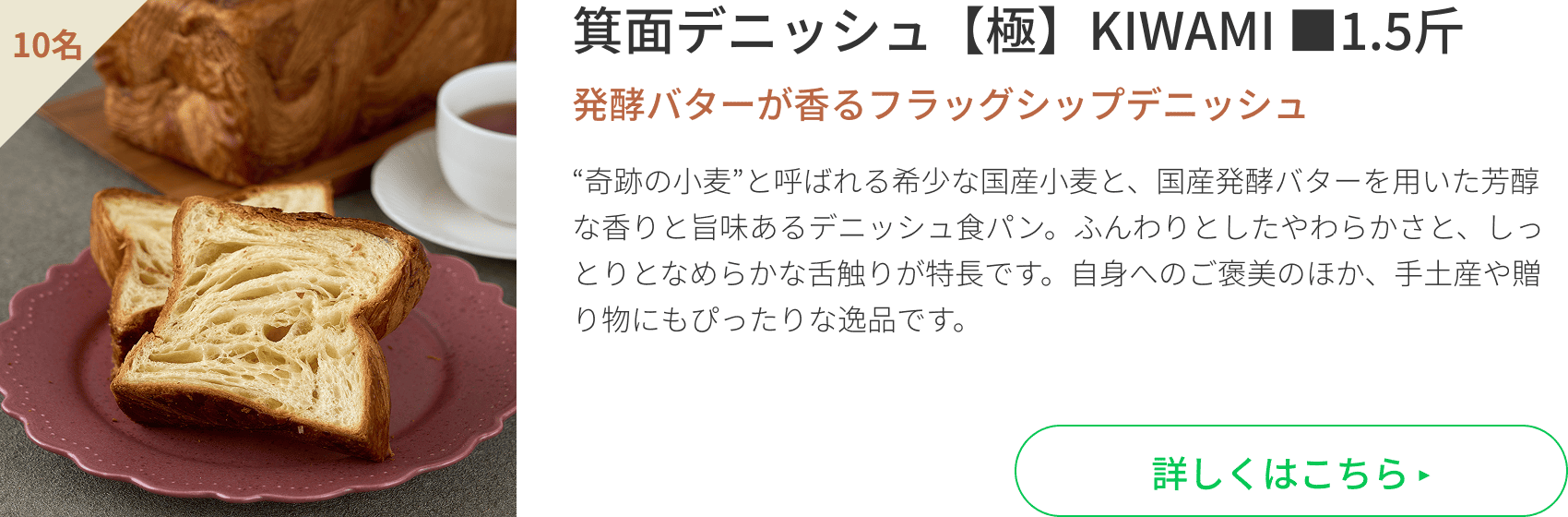 - 応募規約(以下「本規約」という)とは、株式会社ブランジスタメディア(以下「当社」という)が提供する箕面デニッシュ サトウカエデの「箕面デニッシュ【極】KIWAMI ■1.5斤」プレゼントキャンペーン(以下「本懸賞」という)について、本懸賞への応募者(以下「応募者」という)及び当社が遵守すべき事項と諸条件を明確にするために定めるものです。