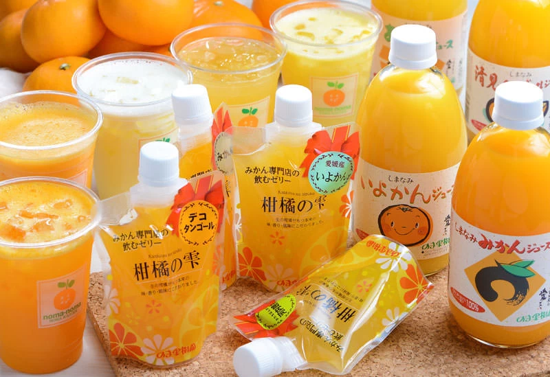 - ★ 大街道グルメの締めくくりは、やはりみかん! こちらは定番のみかんから、「媛まどんな」や「甘平(かんぺい)」など希少品種まで、1年中さまざまな柑橘類が並ぶお店で、店内には生ジュースバーも。時節のフルーツを使い、作り置きはせずフレッシュな味わいを楽しめます